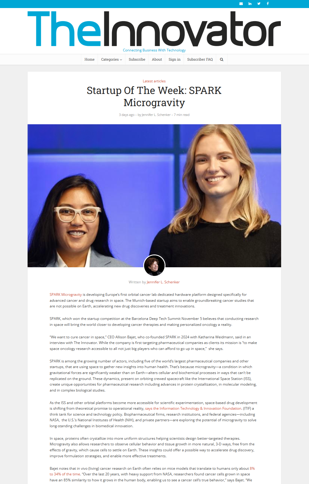 SPARK Microgravity GmbH has clinched the top honor at the Barcelona Deep Tech Summit 2025, taking home the #1 EU Deep Tech Champion Award.